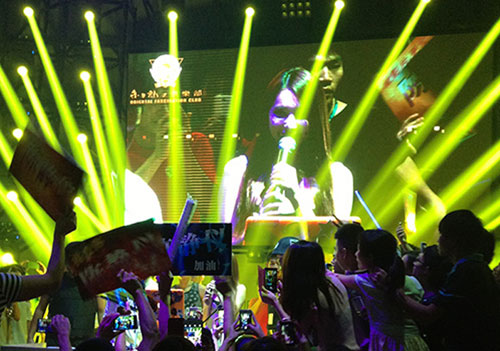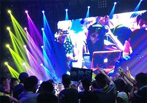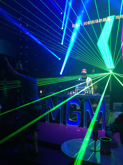 東莞東方魅力酒吧 :采用72臺(tái)200W光束燈,2臺(tái)5W全彩激光燈,1臺(tái)4W單綠激光燈,24臺(tái)108搖頭染色燈以及其它效果燈