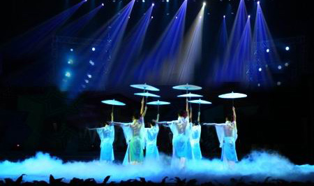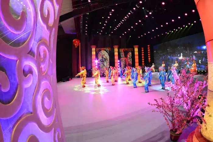 湖北松滋春晚:均采用源創(chuàng)280臺54顆LED帕燈作為染色,以及LED面光帕燈