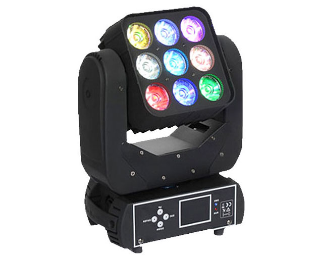 -Very small, fast LED shaking head matrix beam light. Channel values: 13 and 48 Horizontal / Vertical: 540 ° / 180 °, 16bit Accuracy Scanning. Total power: 115W Light source: 9 12W red, green, blue and white 4 in 1 light beads